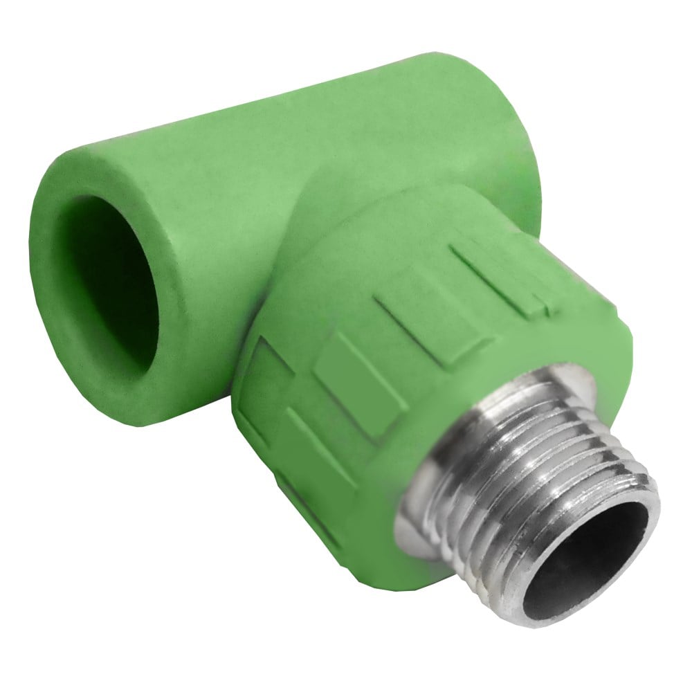 TEE PPR pipe to link steel pipe,M 20X1/2".Designed to join 3 lengths of pipe in a 90 degree branch connection.Plastic piping for interior hot and cold water distribution systems in buildings and floor & central heating systems, air ducts or, if applicable, other use in industry and agriculture. Manufactured from finest quality plastic, this range exhibits superb durability.