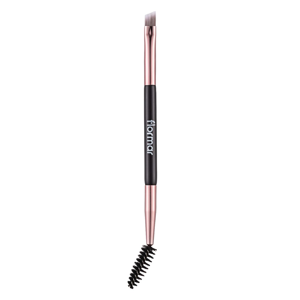 Eyebrow bevelled makeup brush, made of aluminum, ABS plastic material and nylon bristles. It is used for combing eyebrows and for lining and enhancing eyebrow color. Synthetic fiber bristles are gentle to the skin. Keep this product away from fire and high temperatures.