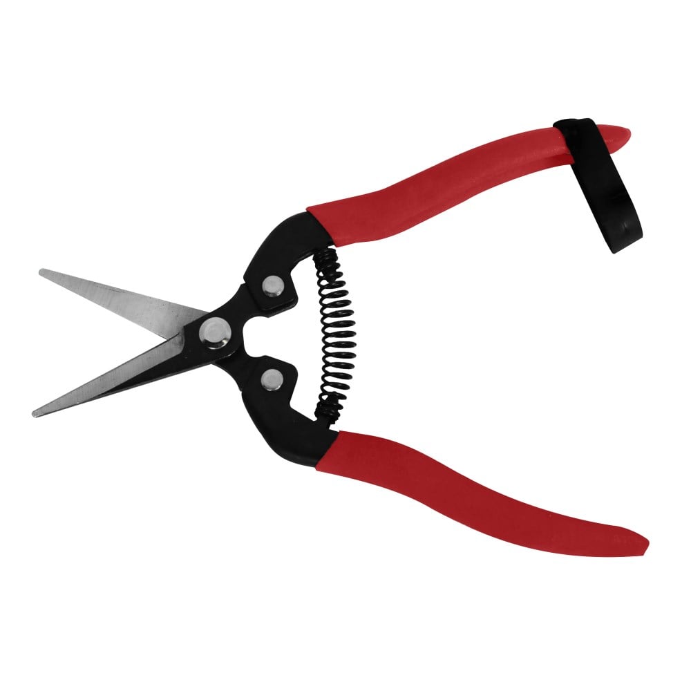 "Fruit and vegetable Grape shears scissors curved blade Brixo Curved blade made ​​of carbon steel, aluminum body, PVC handle Non-slip, length cm. 18. Suitable for harvest, collection and cleaning of any type of fruit and vegetables "
