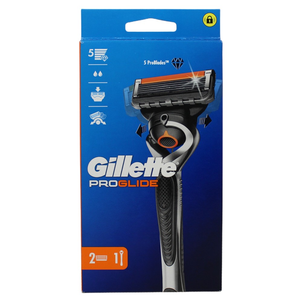 Gillette ProGlide razor with 5 anti-friction blades for a close, long-lasting shave. Removes virtually all hair effortlessly. Featuring FlexBall technology that follows contours for a comfortable shave. It has an improved lubricating strip. Precision trimmer for shaving hard-to-reach areas and shaping facial hair. Microfins stretch and smooth skin for a close shave.