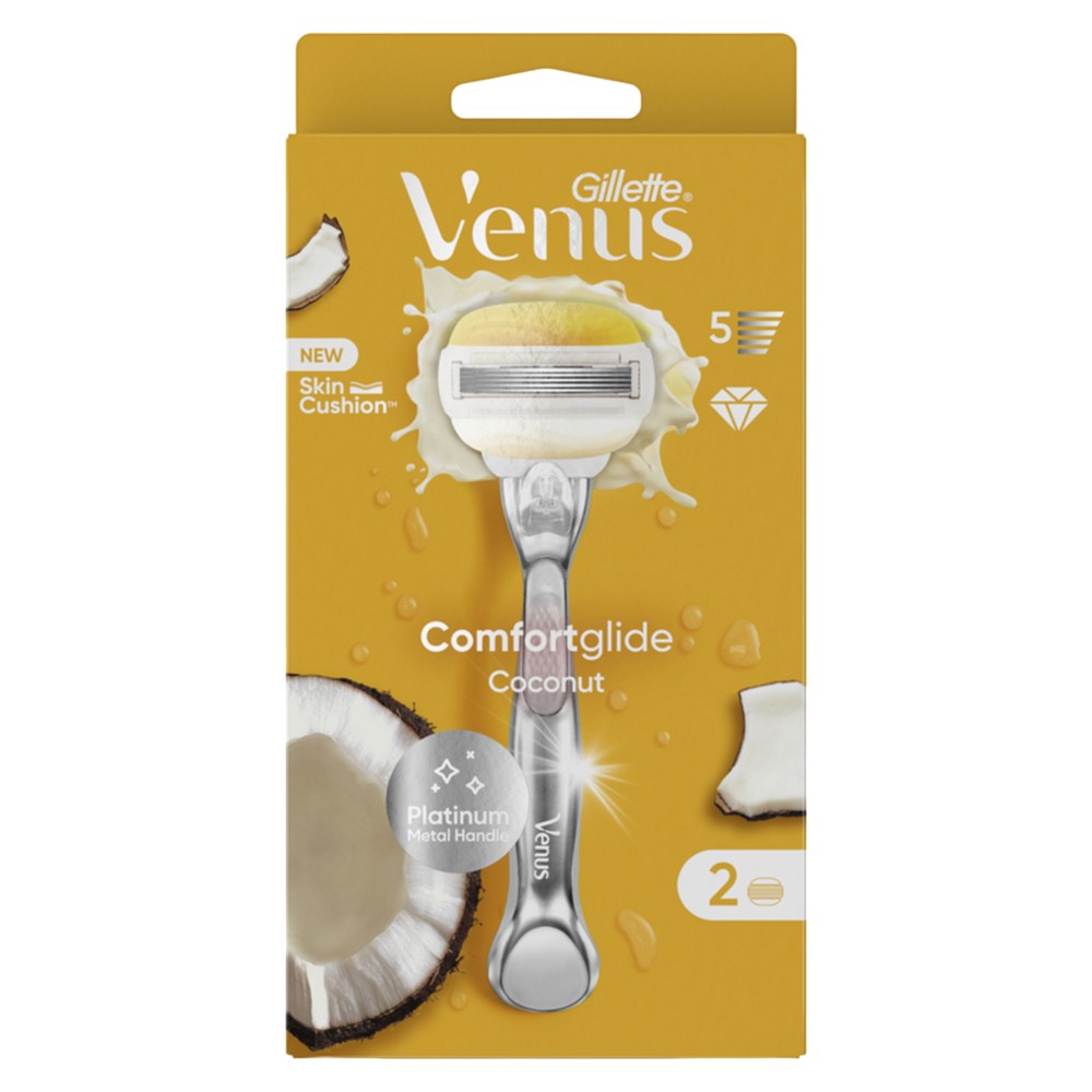 The Venus Coconut Comfortglide Women's Razor is your new number one ally to always have silky smooth legs. Thanks to its 5 diamond-coated blades, it provides smoother and more consistent hair removal, making even the shortest and most difficult hairs disappear. In addition, the SkinCushion bar releases just the right amount of protection you want, preventing those pesky skin irritations, while giving it an exotic and enticing coconut scent. The kit also contains 2 replacement blades. Also improve hair removal with Venus women's razor blades, specially designed for the female body.