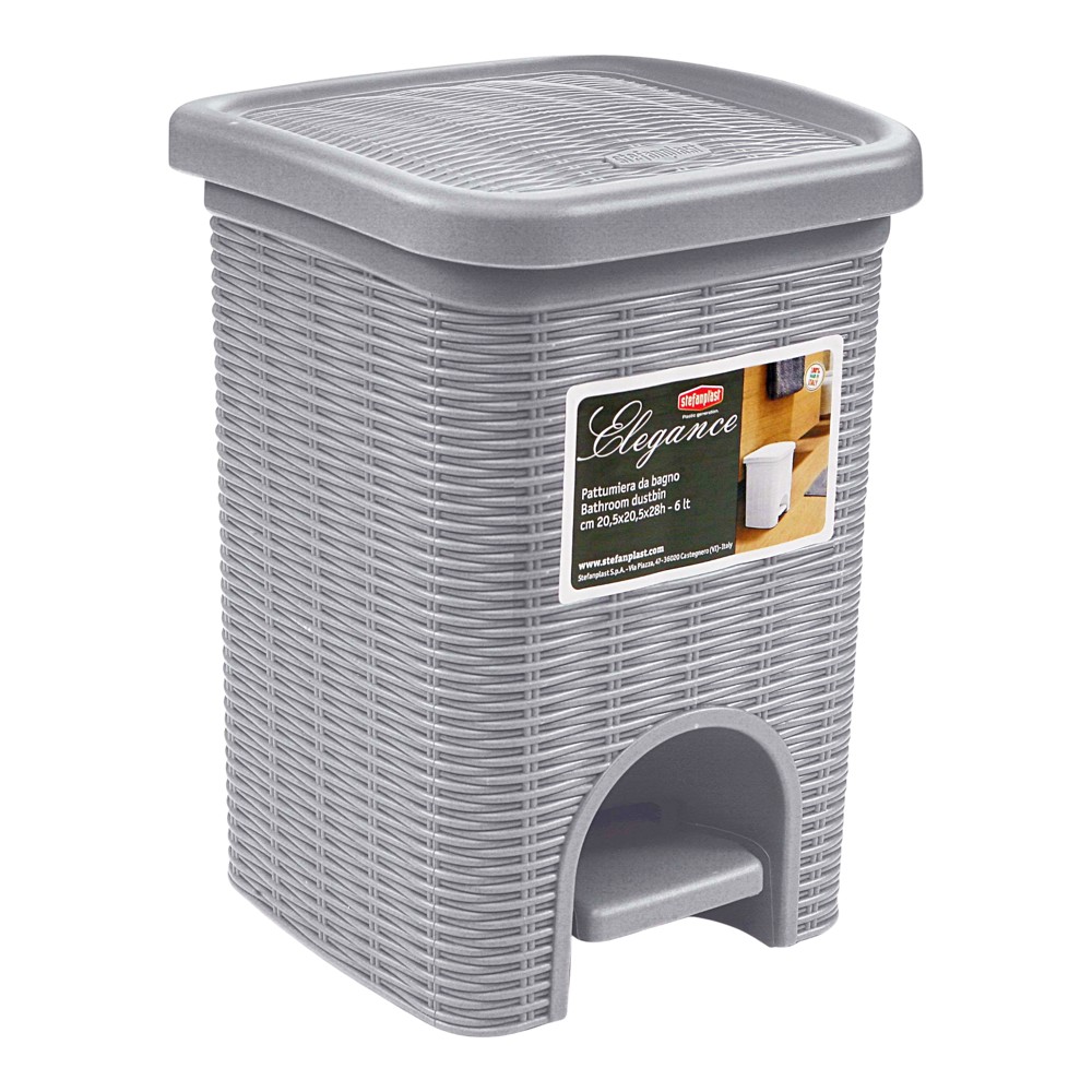The waste bin "Elegance" by Stefanplast produced in high quality polypropylene is ideal for storing waste in your home. With a square shape and a capacity of 6 liters, it is more than enough for any type of environment. The neutral gray color easily adapts to all types of environments. The pedal opening makes this bin incredibly practical. Dimensions: height 28 cm x width 20.5 cm x depth 20.5 cm.
