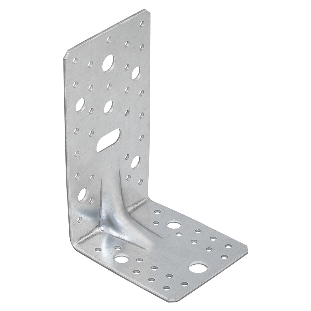 Reinforced angle wood bracket, made of galvanized zinc material, with dimensions of 17.2x10.5x9x0.3 cm, in gray color, equipped with zinc powder outer coating, which protects it against corrosion and rust. It can be used to enable the best possible connection of wooden elements with each other or the connection of the wooden elements with the walls and floor. This product is suitable for use in both standard systems and individually designed connectors.