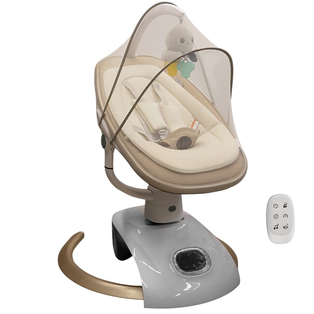 The Kidilo children's rocking chair is an excellent choice for parents looking for a safe, comfortable and fun swing for their children. With advanced functions and modern design, this swing offers maximum comfort and convenience for your little ones from birth to 12 months. This relaxation chair offers five different speed levels, allowing you to adjust the swing speed to your preference. Equipped with built-in music tunes that help soothe and entertain your child. Offers a variety of swings to keep your baby engaged and relaxed. Soft layers make this swing extremely comfortable for your baby, providing good support during use. Equipped with a soft toy that provides extra entertainment for your child while relaxing. The swing offers two different recline positions, allowing the child to rest in the most comfortable position for him. Equipped with Bluetooth connectivity that allows parents to play their child's favorite music directly from their devices. It includes a remote control that allows parents to control the swing from a distance, also equipped with a touch screen for maximum ease of use and control of various functions.