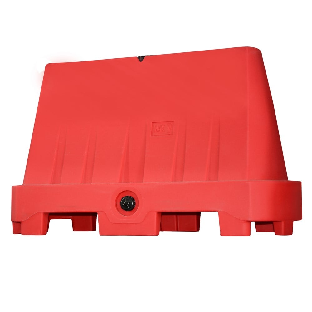 The road barriers are made from high density polyethylene which guarantees an excellent resistance to wear and tear. The rotational molding guarantees a weld joint free product. The road separators are the ideal solution for temporary and quick re-directing of road traffic as the product is easily placed and removed.The road separators are equipped with an easy-to-use linking system (male-female), are stackable and offer excellent stability.The road separator can be used with poles for vertical road signs, direction or limitations signs.The barrier is provided with two threaded plugs; a plug located on the top of the unit and an unload plug located in the center at the bottom. The unload plug is used to drain the stabilizing mass (water or sand).Each unit has “max filling level” indicator.The road separator is made of high grade UV-stabilized a-toxic polyethylene with a high resistance to shocks. For improved safety, a reflecting stripe can be inserted in case of reduced visibility conditions.