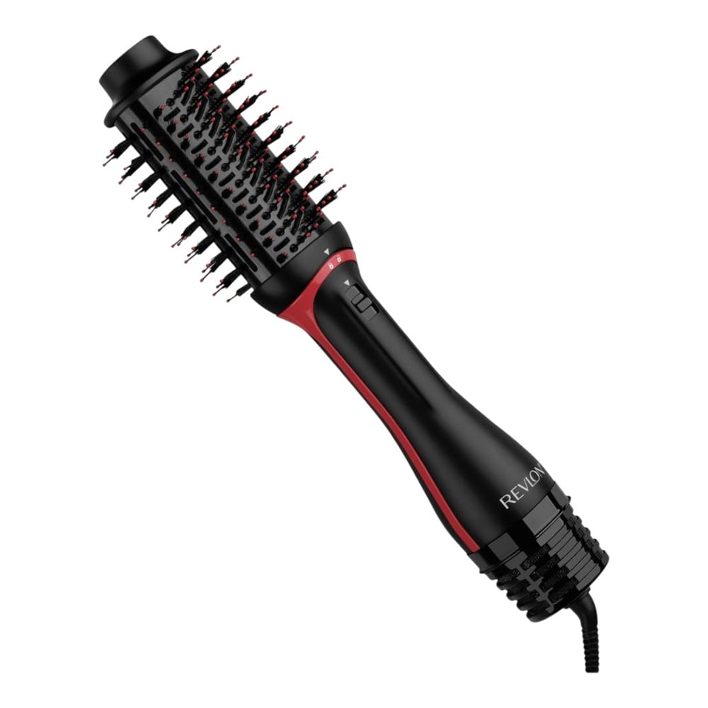 REVLON PROFESSIONAL presents the One-Step Volumiser Plus hot air brush in black, 820 W. This innovative hot air brush combines styling and conditioning in one tool, creating voluminous hair with just one movement. Thanks to the titanium ceramic tourmaline coating and oval plate design, hair is gently smoothed and styled, while the ergonomic handle ensures comfortable use. The hot air brush features an ionic function for shiny and smooth hair, as well as four heat settings and a cool setting for customized styling. The round brush provides extra volume and body, while the 2.5m cable length ensures maximum styling flexibility.