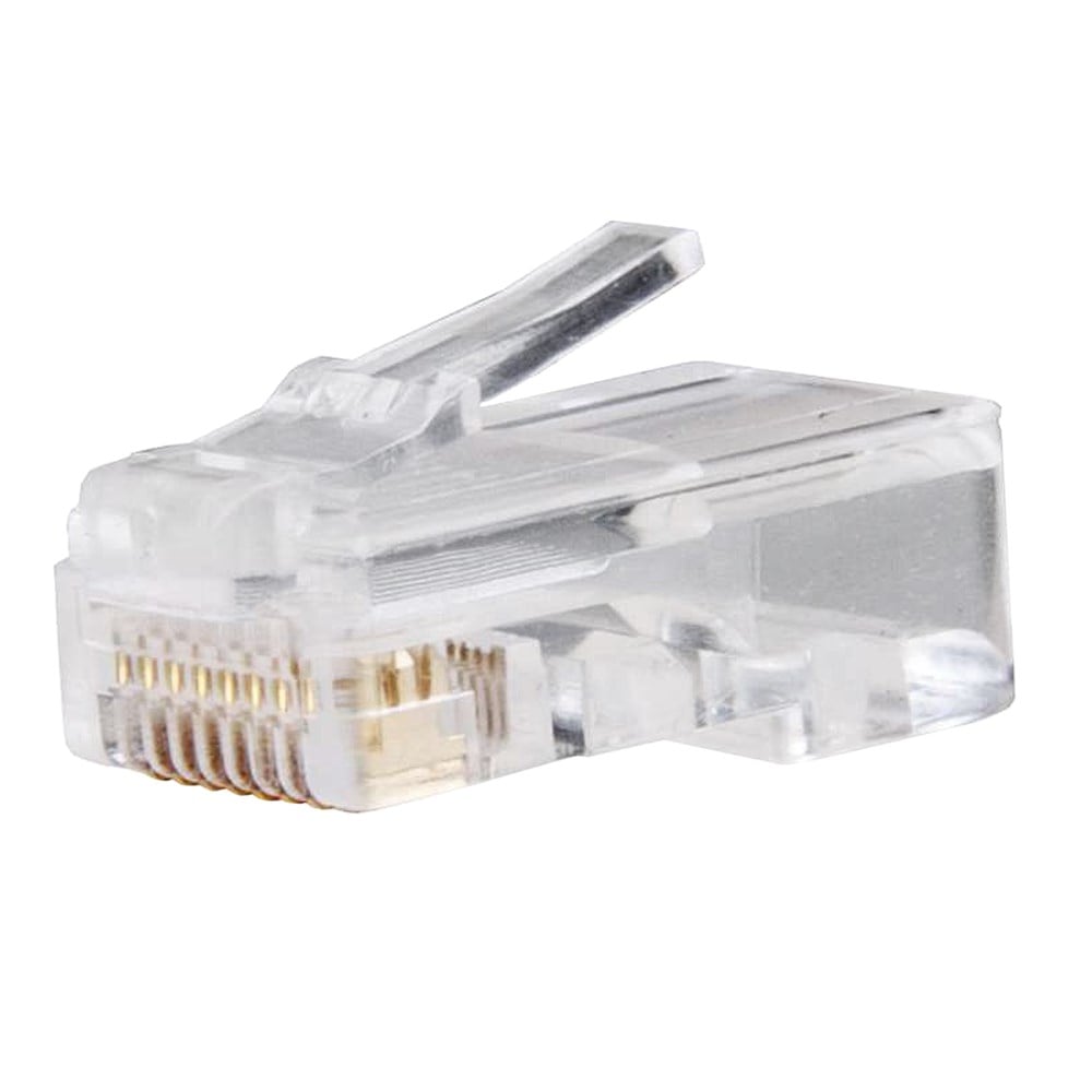Plug RJ45 8-8 50U, they feature gold-plated contacts for improved performance. These plugs feature an 8-position, 8-contact design to accommodate connection to most popular female outlet styles. Contacts of connectors RJ45 CAT5E are covered with 50 μg of