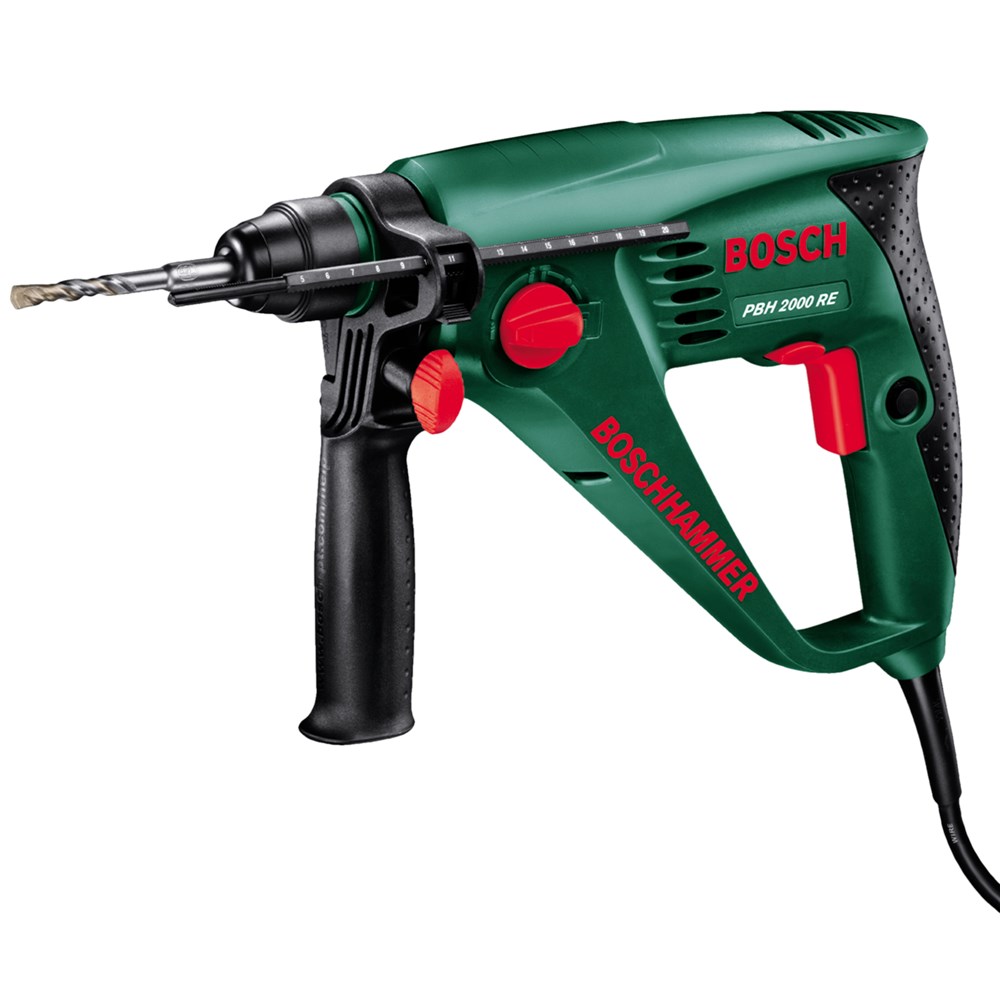 The Rotary hammer PBH 2000 RE is a powerful, handy and light tool. It performs effortless hammering in concrete and masonry, chiselling, drilling and screwdriving with power of 550 watts. It has high-impact energy , 1.7 joules for high impact force in hard materials regardless of the feed pressure. It has ergonomic design: low working weight of 2.2 kg and compact slimline shape. It has Bosch SDS-plus for fast, tool-free accessory changes.