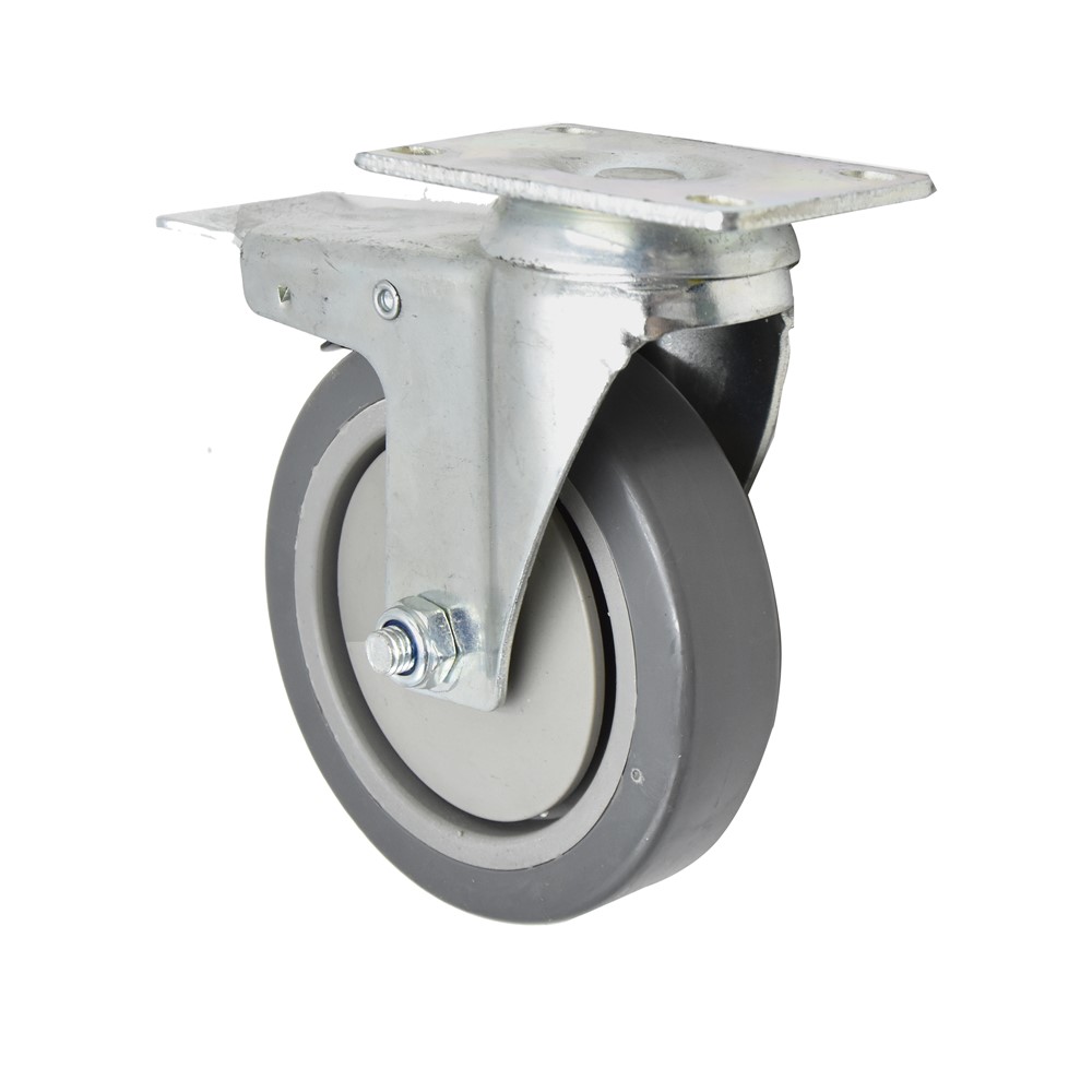 This caster helps move heavy loads on smooth, hard surfaces and finished concrete floors where quiet movement and floor protection are vital. It attaches easily with a plate and 4 screws.