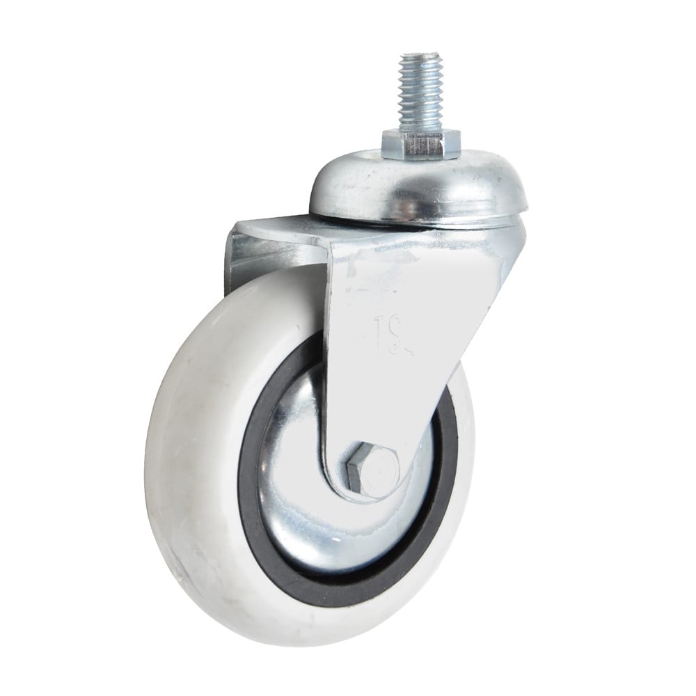 This caster helps move heavy loads on smooth, hard surfaces and finished concrete floors where quiet movement and floor protection are vital. It attaches easily with a plate and 4 screws.