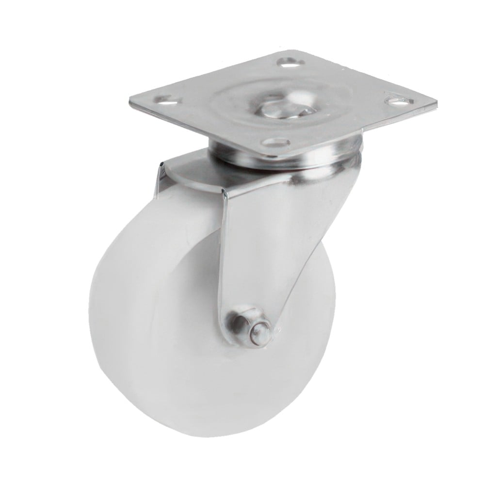 This caster helps move heavy loads on smooth, hard surfaces and finished concrete floors where quiet movement and floor protection are vital. It attaches easily with a plate and 4 screws.