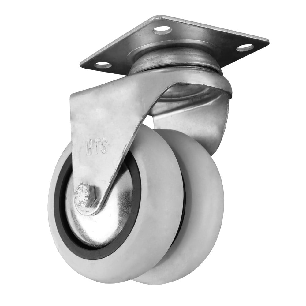 This caster helps move heavy loads on smooth, hard surfaces and finished concrete floors where quiet movement and floor protection are vital. The caster swivels 360-degrees for ease of use and has a 50 kg. load rating. It attaches easily with a plate and 4 screws.