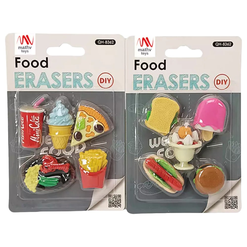 Rubber set, Math, Food, 4 pieces, 1 pack