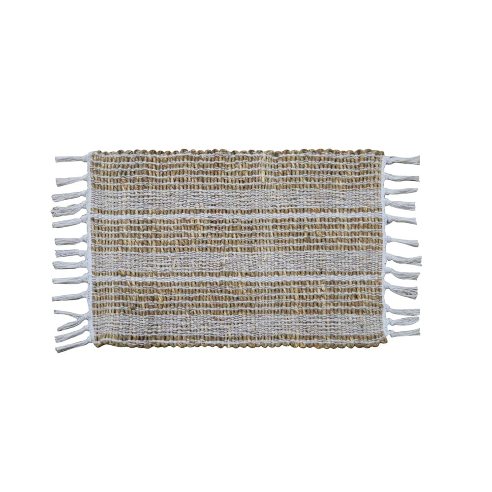 This small and simple rug, crafted from 100% natural fiber, brings a natural and warm touch to any corner of your home. The beige color, a soft and neutral shade, makes it suitable for any decorating style, adding a simple and elegant element. The natural fiber texture offers a pleasant feeling underfoot, making it a welcome addition to any environment. With dimensions of 33x47 cm, this rug is ideal for adding a natural touch to small spaces, such as near a chair, at the entrance of a room, or in a reading corner. In addition to its aesthetic appeal, this rug is also practical. The natural fibers are durable and easy to maintain, making it an excellent choice for everyday use. It not only decorates the space but also protects the floor from scratches and stains, adding a layer of comfort and style to your space.
