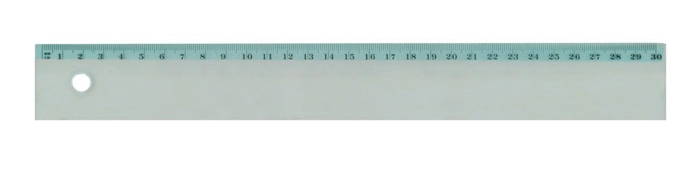 Simple straight ruler, made of plastic material, in transparent color, with measuring system in centimeters. It can be used to sketch, underline and measure lengths up to 30 cm. This product is suitable for use by children over 3 years old.