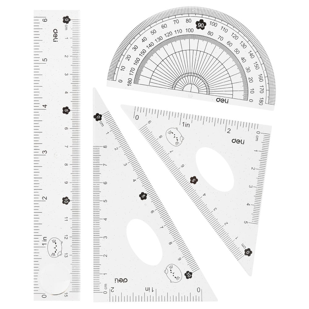 This Deli MiYou ruler set is a practical and visual solution for basic measuring tools. With transparent material and lightweight design, it is suitable for children, students and professionals who want to have the necessary tools in a compact and easy-to-use package.
