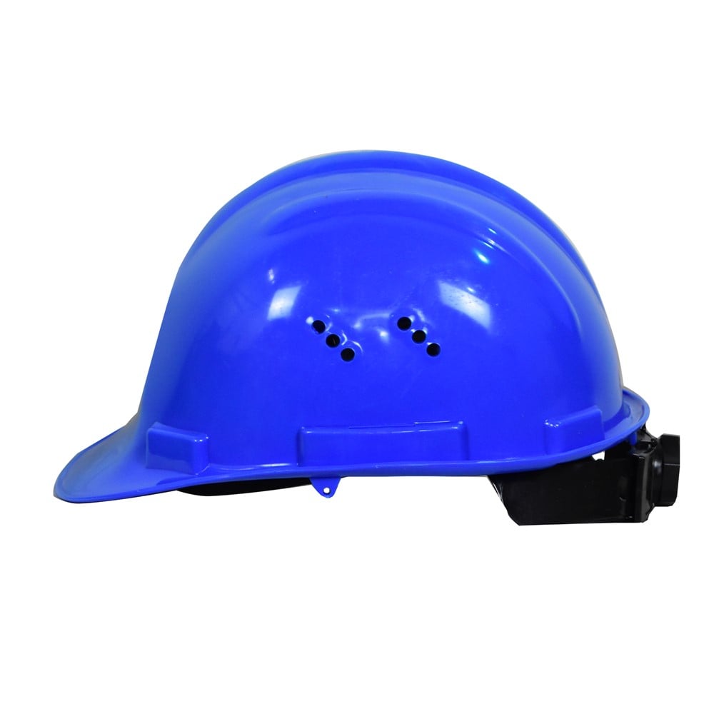 With excellent resistance against shocks and cracks. With maximum absorption capacity. Made of high density HDPE plastic. Default: EN397 CE. Easy to use, with manual adjustment of the belt strap. Ideal for protection from falling objects inside the yard and manufacturing plants.