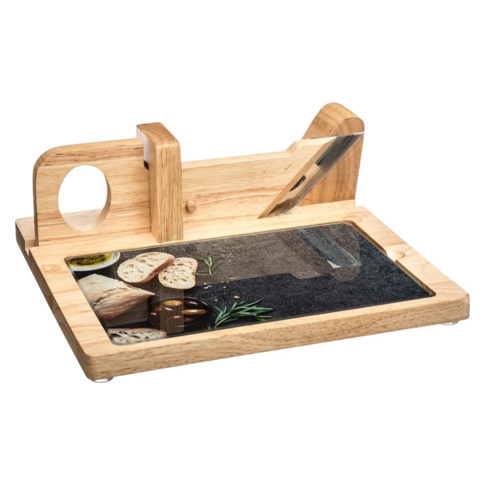 A salami slicer with a cutting board is a functional and aesthetic tool that brings ease and elegance to your kitchen. Crafted from high-quality natural wood, this product combines a practical salami slicer with an integrated cutting board, making it very convenient for preparing and serving food. With dimensions of 28.5 x 25.5 x 10 cm, it offers ample space for slicing salami, cheese, bread, or other appetizers, while its traditional design fits in easily for both daily use and festive occasions.