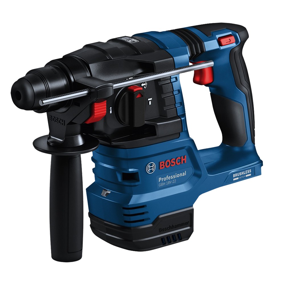 The versatile Bosch GBH 18V-22 Professional cordless hammer drill is suitable for hammer drilling in concrete, brick and stone as well as for light chiseling work, and also for drilling without impact in wood, metal, ceramic and plastic. It offers a compact, lightweight and ergonomic design with a good center of gravity, making it easier and less tiring to handle, especially when drilling overhead for the installation of lights, lamps or smoke detectors. Thanks to KickBack Control and Vibration Control, you always remain in control and your hands and arms are less strained. It has a powerful impact system with 1.9 joules, three working modes (drilling, hammer drilling, chiseling) and more running time per battery charge. The GBH 18V-22 Professional hammer drill can be connected to the handy GDE 18V-12 Professional cordless vacuum cleaner with a single click, for more cleanliness in the workplace. The integrated LED lamp also illuminates dark work areas. The Bosch Electronic Motor Protection (EMP) protects the motor against overload, overheating and blocking. The GBH 18V-22 Professional also has an additional handle, a depth stop and a safety slip clutch. The required batteries and chargers are part of the AMPShare Alliance. A single battery is suitable for all tools and machines in the blue Bosch Professional 18V system, but can also be used across brands with numerous other devices from other manufacturers in the AMPShare Alliance. No more buying new batteries for every new tool, no more searching for the "right" battery, with AMPShare one battery is enough for all jobs.