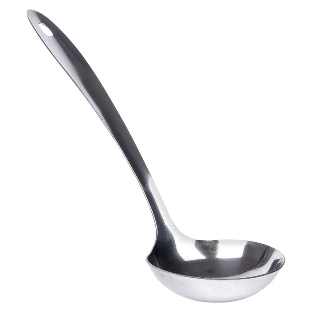 A stainless steel ladle which serves for serving various dishes, soups and sauces. Very easy to use on a daily basis and essential in every kitchen. Made of top quality materials and safe for your health.