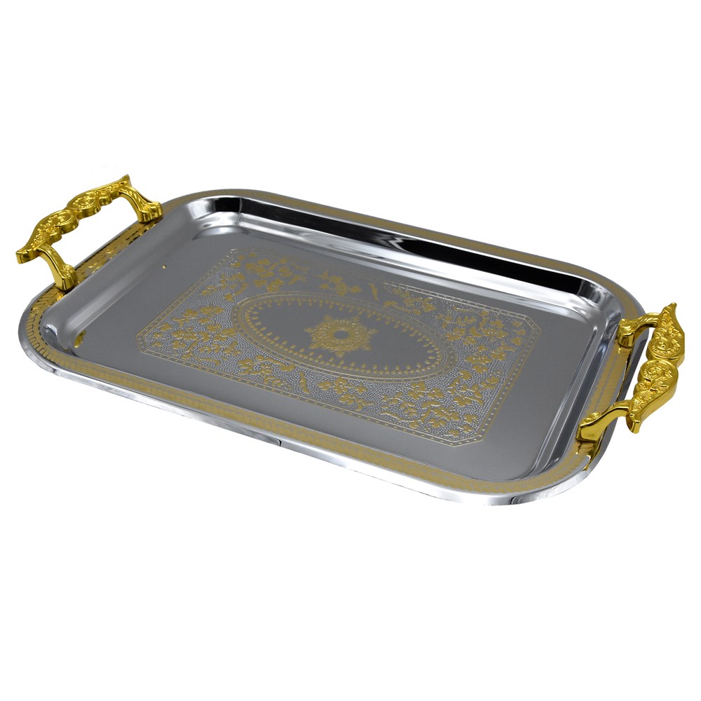 Pay attention to the detail of the serving in a proper and practical way with a metal material tray and a special design. The simple and rectangular shape of this tray with raised board and gloves for holding it will be a comfortable solution to your daily routine and not only.