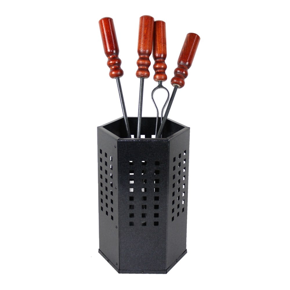 Give to your fireplace class and greatness completing it with necessary accessories! Set with 4 pieces of fireplace accessories: shovel, brush, poker and stand. Powder baking paint (black painted, wood handle) to resist against heat and mechanical strokes.