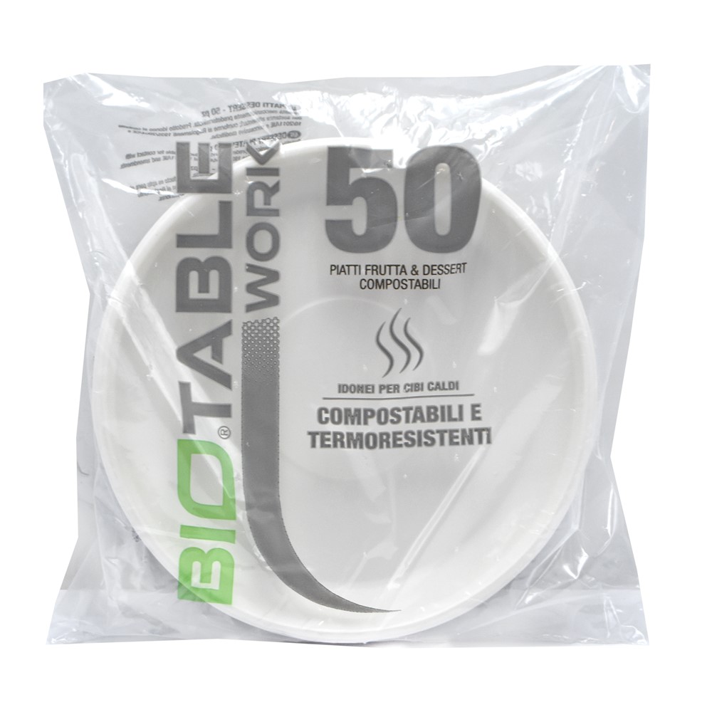Set of 50 disposable dessert plates, Bio Table, biopolymer, 16 cm, white, 1 piece
