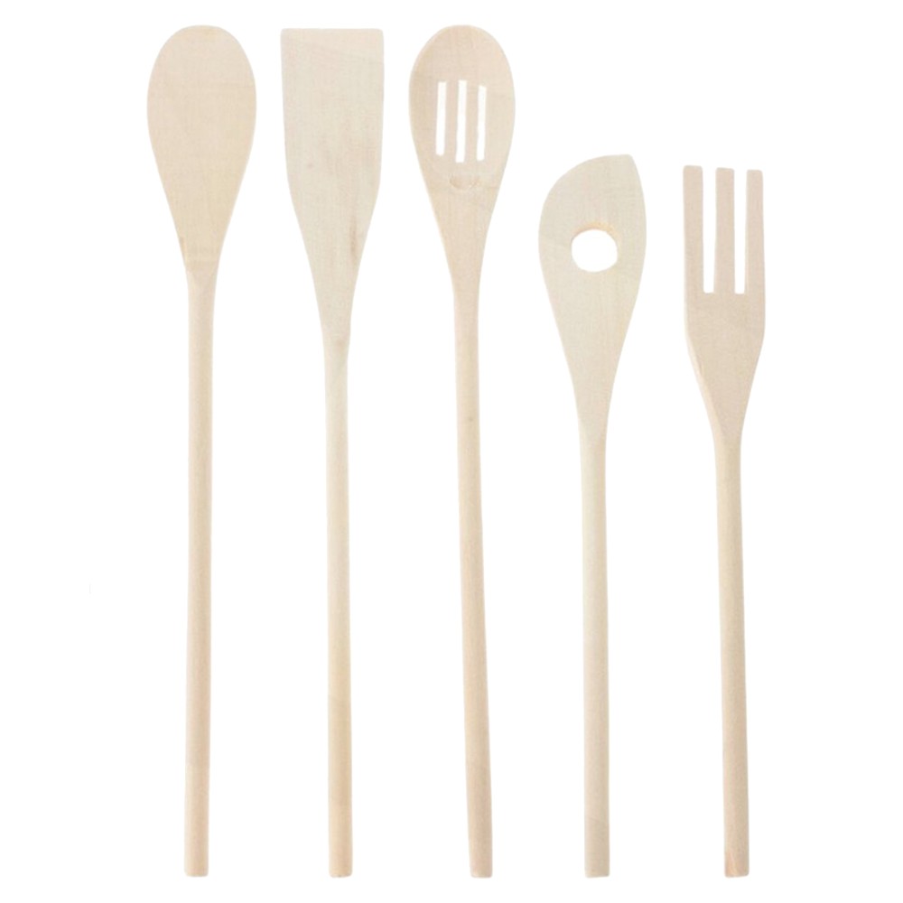 This set of 5 wooden spoons is an elegant and functional addition to any kitchen. Carefully crafted from natural wood, these spoons are a healthy and sustainable choice for cooking and serving food. Simply wash with warm, soapy water and dry immediately.