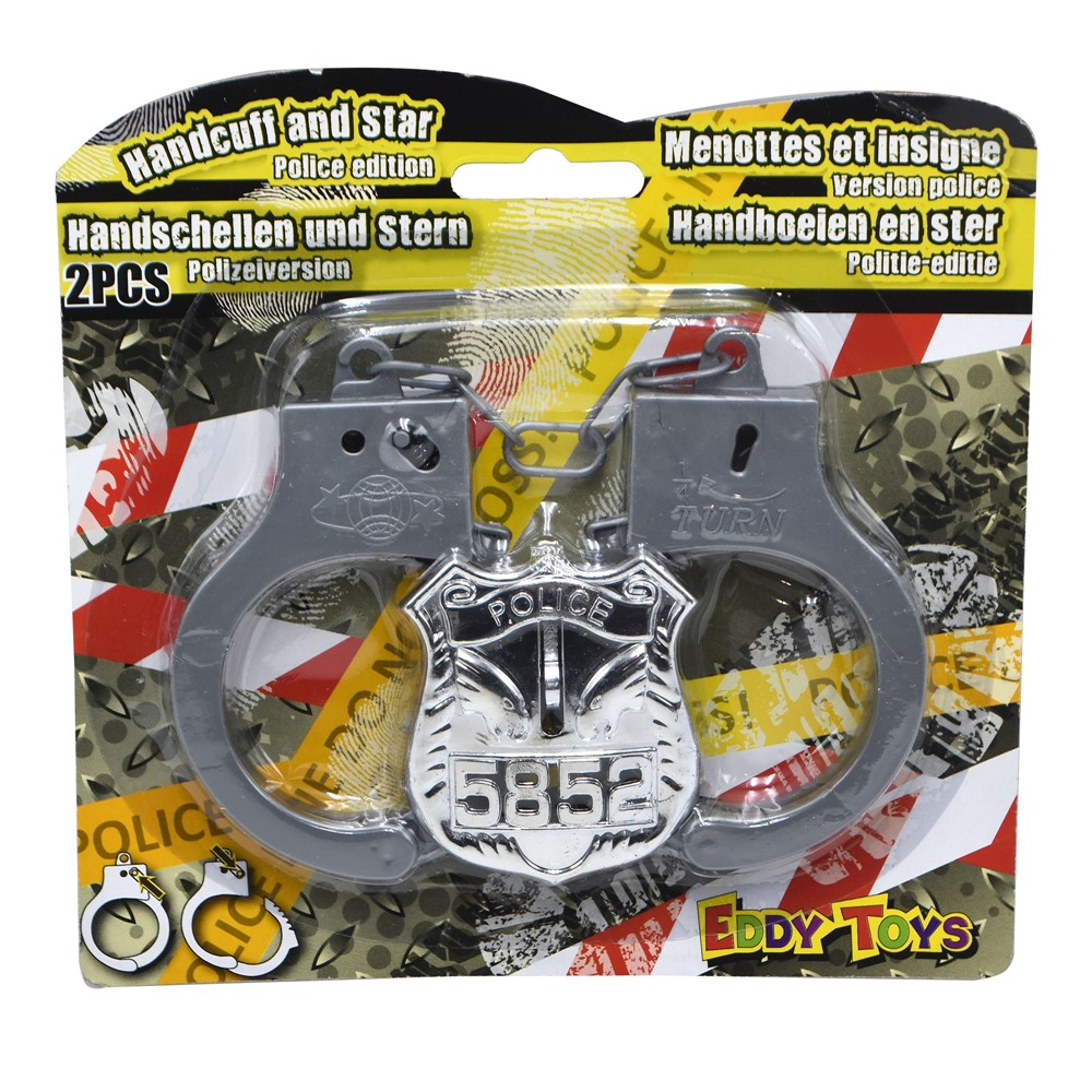 Set of police equipment for children, which contains a pair of handcuffs and a police badge, made of plastic material, in gray color. This set helps to develop the imagination in children, it stimulates the development of motor skills and helps to develop learning skills and perceptual skills, through role play. The constituent material and paint have no content that can be toxic or harmful for children and the product is certified for safety in use. This product is suitable for use by children over 3 years old.