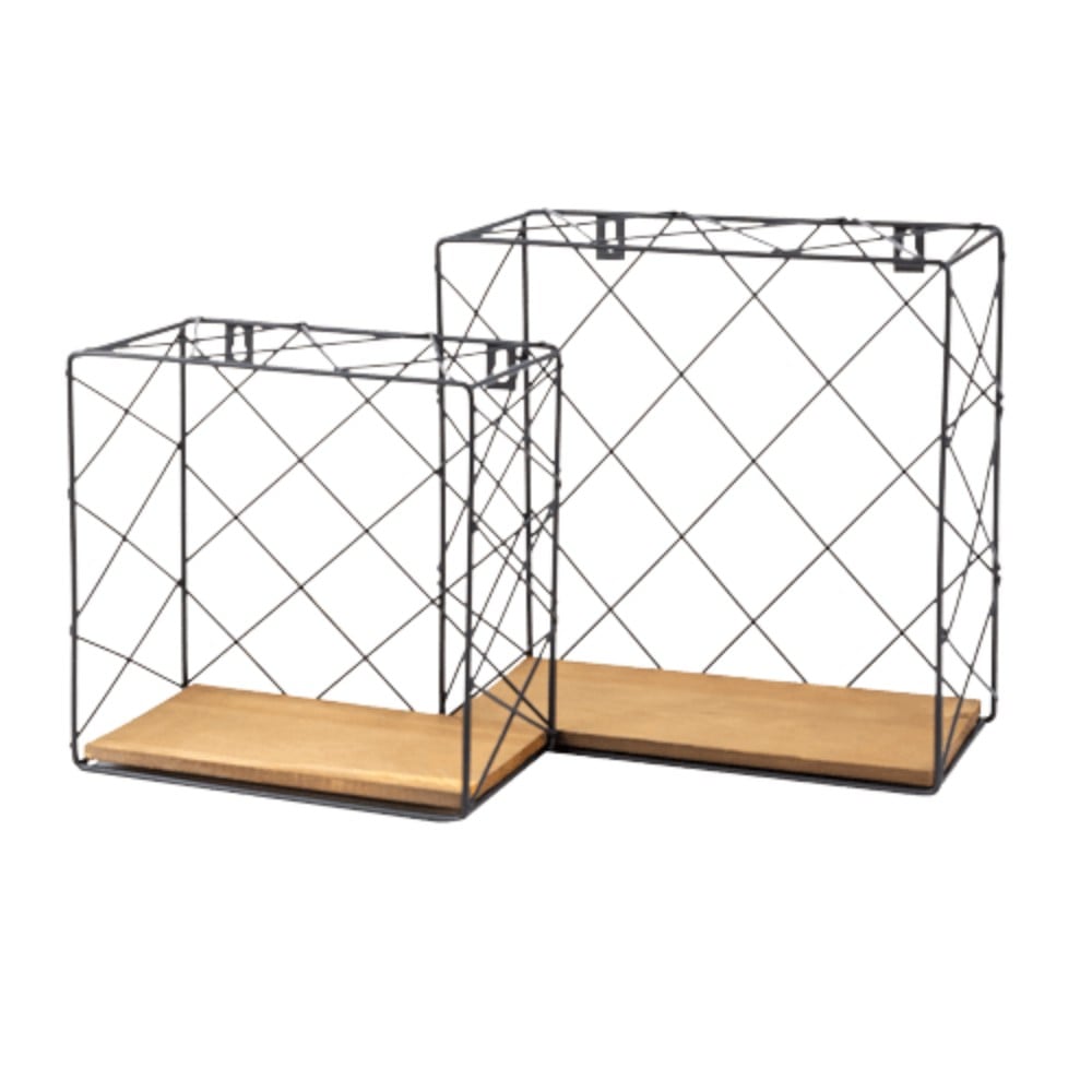Square-shaped modular floating shelves, made of melamine material, The shelves are simple and quick to assemble and mount on walls, and thanks to the hidden fastening system, the brackets cannot be seen, there are no need for plugs to hide bolts or screws and the installation does not require the use of profiles. This set is suitable for use in indoor environments such are living rooms, bedrooms, offices, studios, etc.