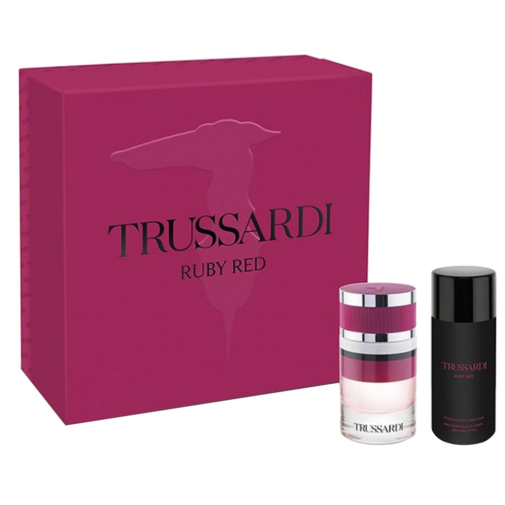 Set Trussardi EDP. Seti perfshin nje parfum EDP 100 ml dhe nje lotion trupi 125 ml. Special Trussardi Ruby Red Coffret, a feminine and seductive fragrance that interprets the Ruby Orchid in its most vibrant version with a spicy touch at the top and a brave touch of patchouli in the background.