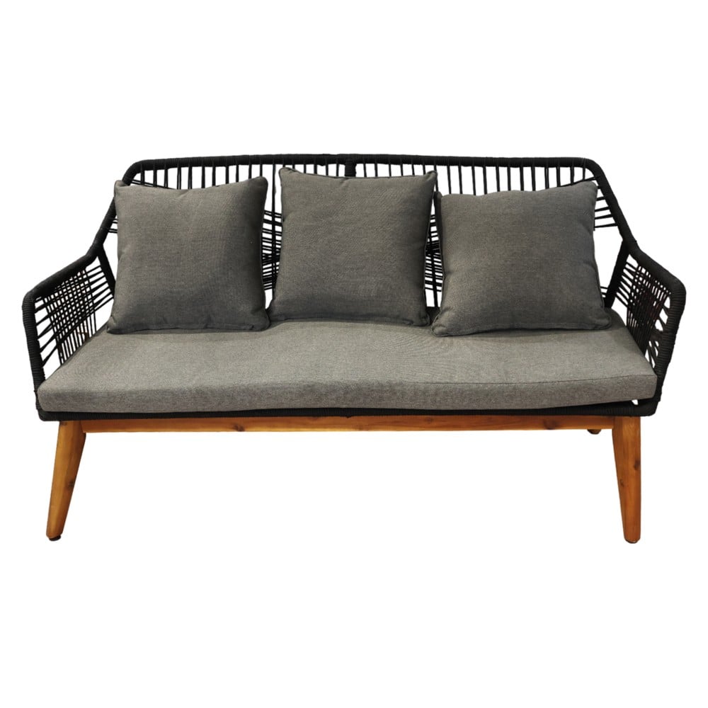 The design includes a strong metal construction, which ensures stability and durability for a long time. The acacia wood legs are a beautiful addition that gives a natural and warm touch to the environment. The legs are level/dislevel adjustable thanks to the leg register mechanism. Its high quality textile is carefully selected to ensure a comfortable living experience. The seat and support cushions are made of 100% polyester 230gr, whose covers are zippered to facilitate their washing.