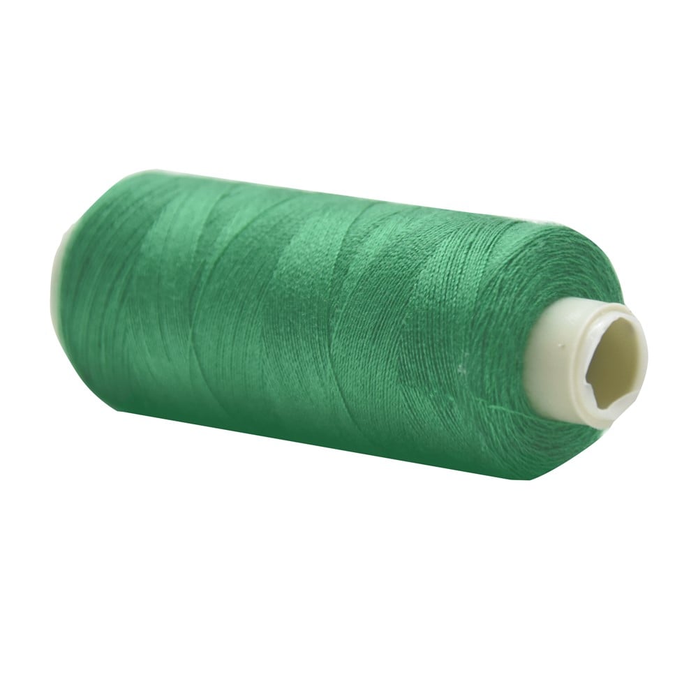Sewing thread, made of white polyester material. In dark green color. Used for quick repairs like button stitching, at home or for travel.