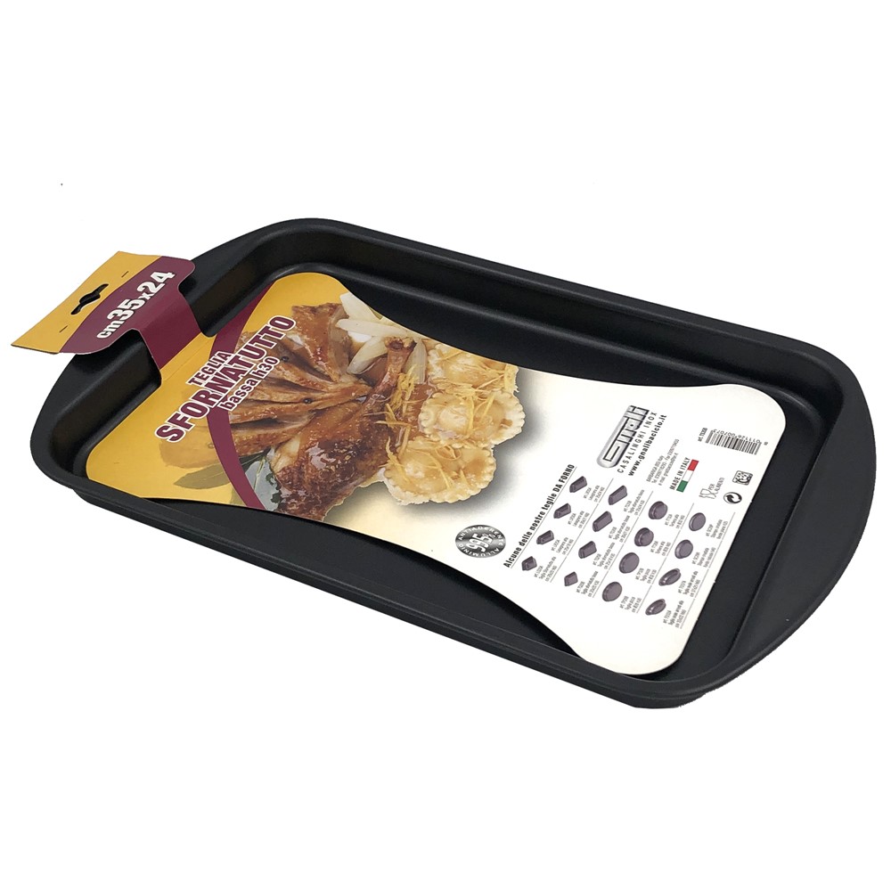 Pans for various dishes such as meat, fish, dough products, and others. Aluminum material with anti-stick coating, very good quality of Italian products, comes with a competitive price.