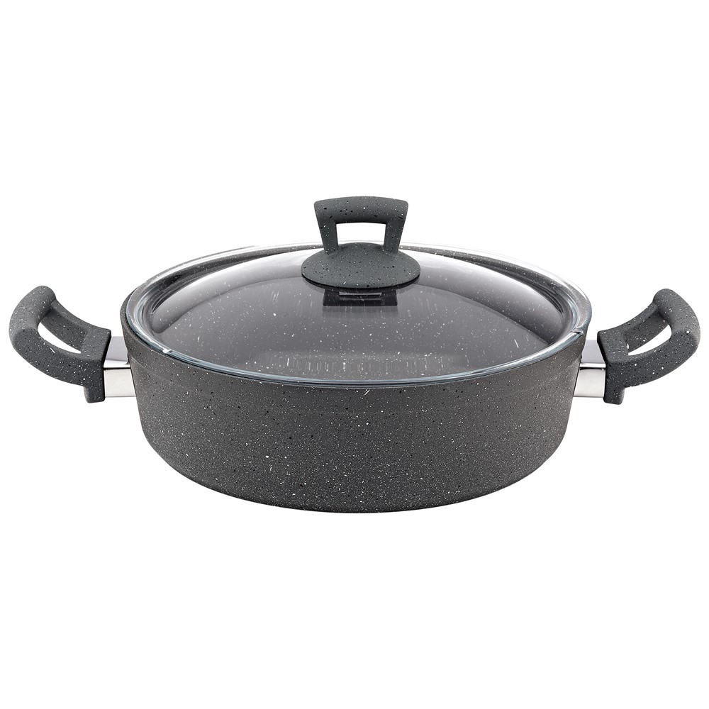 Shallow pot with glass lid, ideal for various home cooking. Thanks to the heat-resistant gloves, cooking with these pots is very practical and safe. Thanks to the innovative Germanitium coated aluminum material, the heat distribution is done evenly and very efficiently. Also, this material enables non-sticking of food during cooking. The pot is suitable for all types of plates, gas, electric or induction. It is recommended to use accessories that do not damage the Germanitium coating material, such as: wooden spoons, silicone, etc.