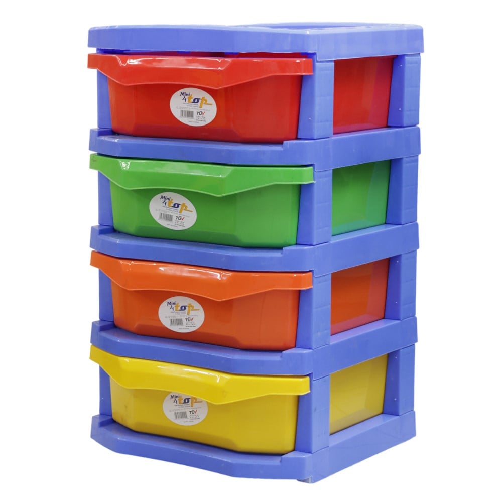 Shelf with 4 drawers, blue, 40x37x62 cm, polypropylene, 1 piece