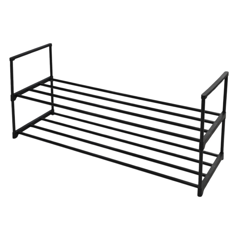 This shoe rack is designed to provide a simple and stylish solution for organizing shoes in your space. With two levels and a stable structure, this rack is ideal for storing different shoes, keeping everything organized and in the right place. The black color gives it a modern look and is suitable for most environments and furniture styles. The shelf is easy to assemble and simple to use. The materials used are easy to clean, making it simple to keep the shelf clean and organized.