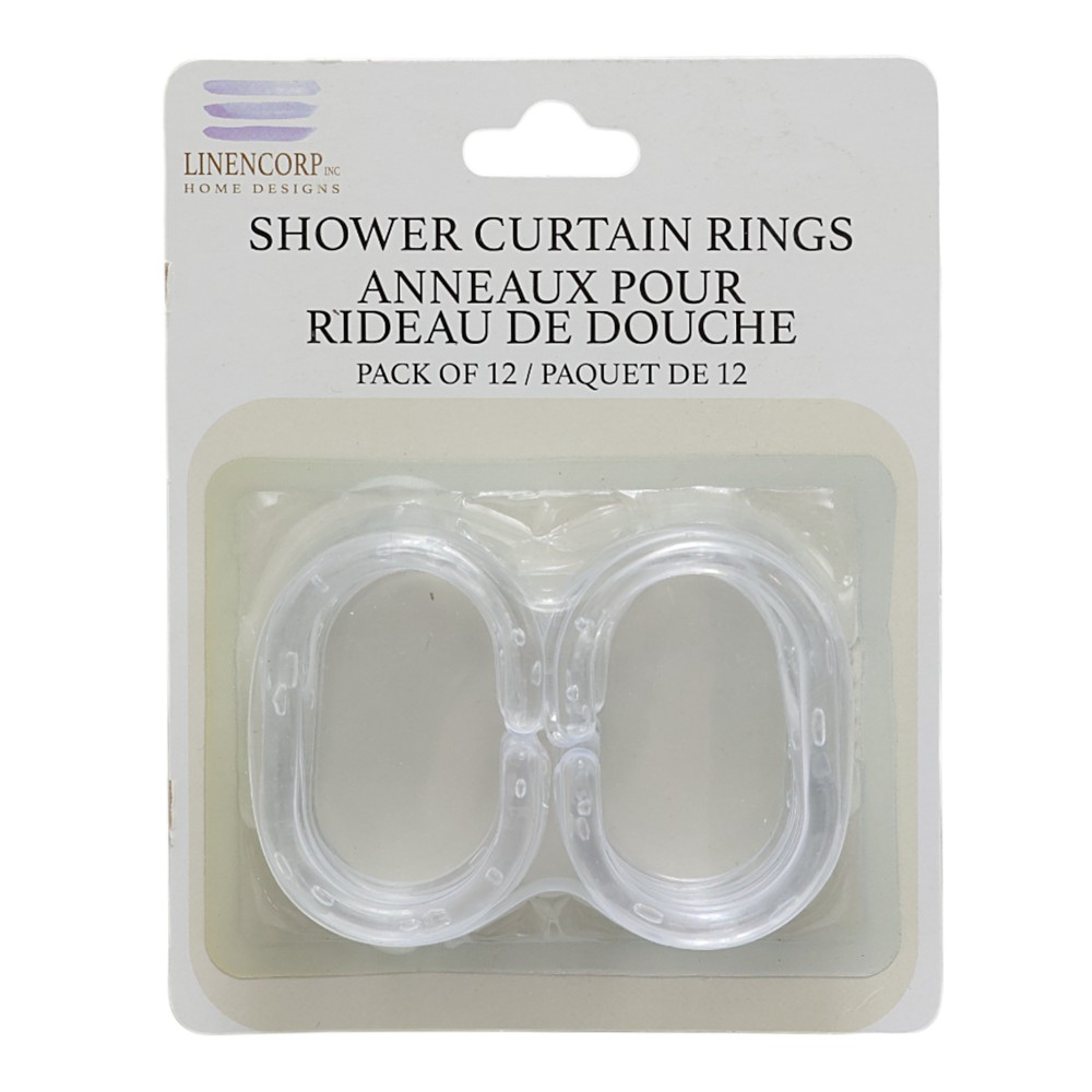 Shower curtain rings, 12 pieces. Produced in plastic material and transparent color, these rings are very resistant to water. Oval shaped rings will always be stable.