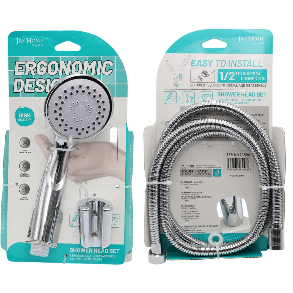 The shower head from J&S Home is the ideal solution for a practical and modern bathroom. Conceived in chromed silver color and equipped with its holder as well as the flexible tube, this head adapts easily to all types of furnishings. The head is also equipped with a universal connection and, moreover, with several water outlet functions.
