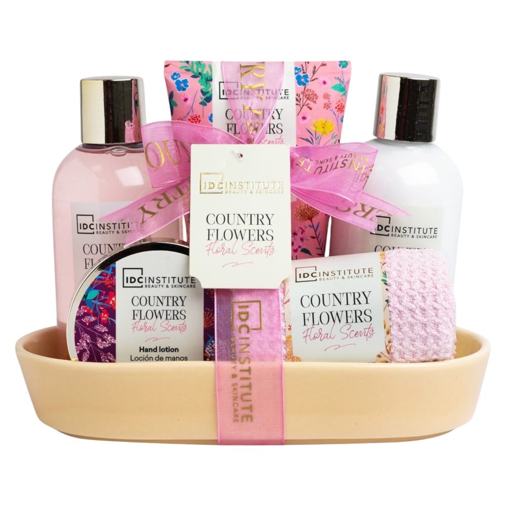 The IDC Institute "Country Flowers" shower set comes in a stylish ceramic packaging and offers a complete body care experience. It includes 200 ml shower gel and 200 ml body lotion for cleaning and moisturizing, 150 ml scrub for exfoliation, 50 ml hand cream for special care, and a soft towel. Ideal to give as a gift or to enjoy a moment of relaxation, this set will offer you a pleasant aroma and freshness.
