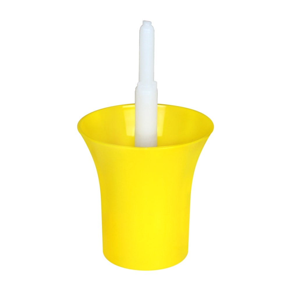 Plastic washer for wine bottles of different sizes, where the mouth of the bottle is inserted into the white holder and, by means of pressure, water is introduced inside. Bottles are cleaned with a little water and metabisulfite to disinfect them.