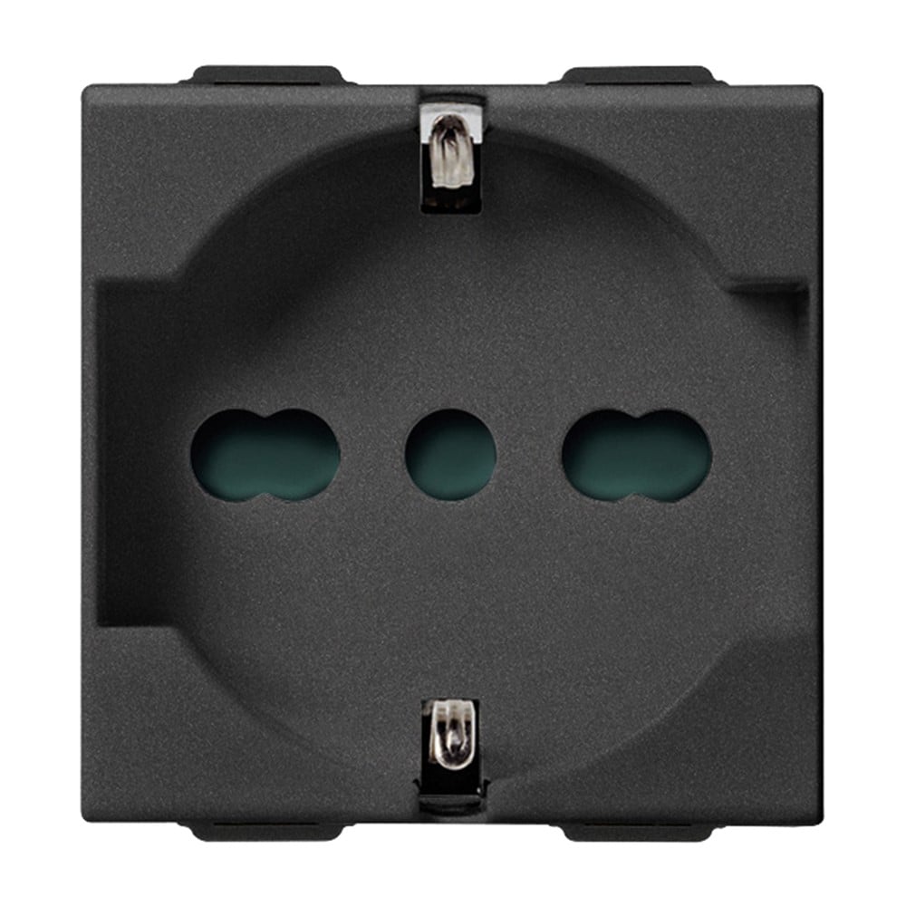 The universal schuko socked is widely used in Europe, known as German Standart. Being in black color can be combined with any cover plate and giving the desired look to your home.