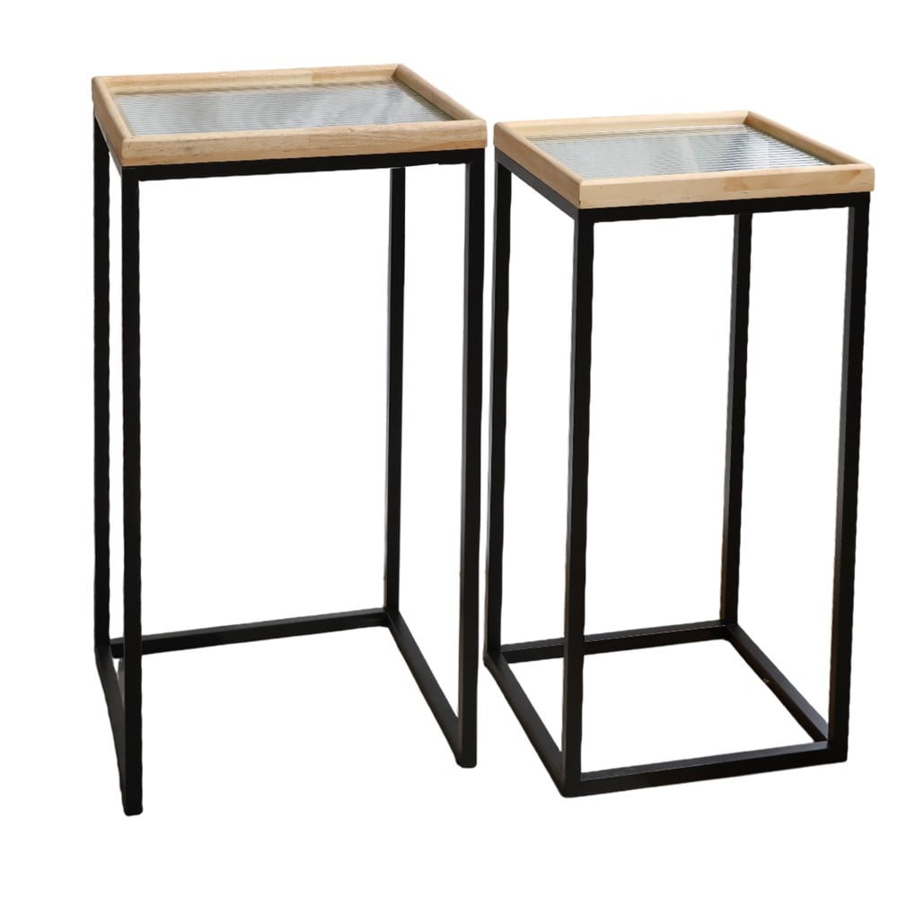 You're reviewing:Side table set ''Kanala'', 2 pieces, metal/glass/wooden, black/brown, 30x30xH65 cm; 35x35xH70 cm