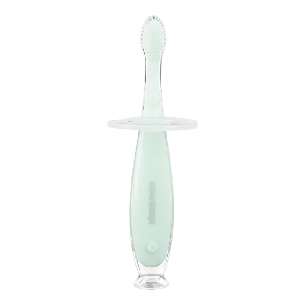 Silicone toothbrush for babies, in mint color, in a size of 12.8x4.1x4.1 cm. This brush has an anti-slip handle, for easier holding, making it more practical. Suitable for children 6 months +.