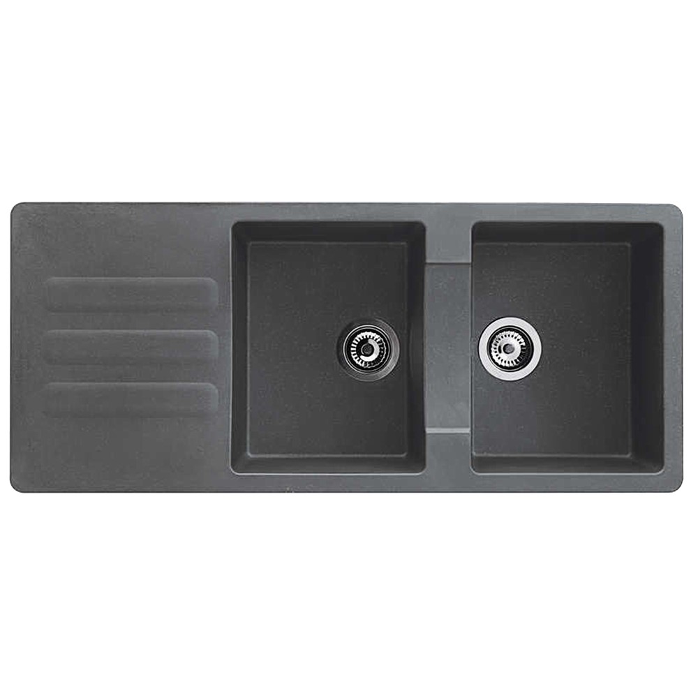 You're reviewing:Sink, 2 bowls, Vogua, polyester resin 40%; mineral fillers and glass fibres 60%, concrete grey, 116x50xH21 cm