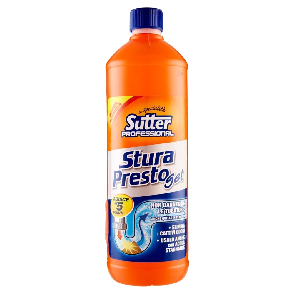 Sutter Sink Unclog Gel unclogs drains from sinks, showers and tubs, eliminating odors and helping to remove bacteria. It does not damage pipes, even plastic ones, and it works in just 5 minutes.