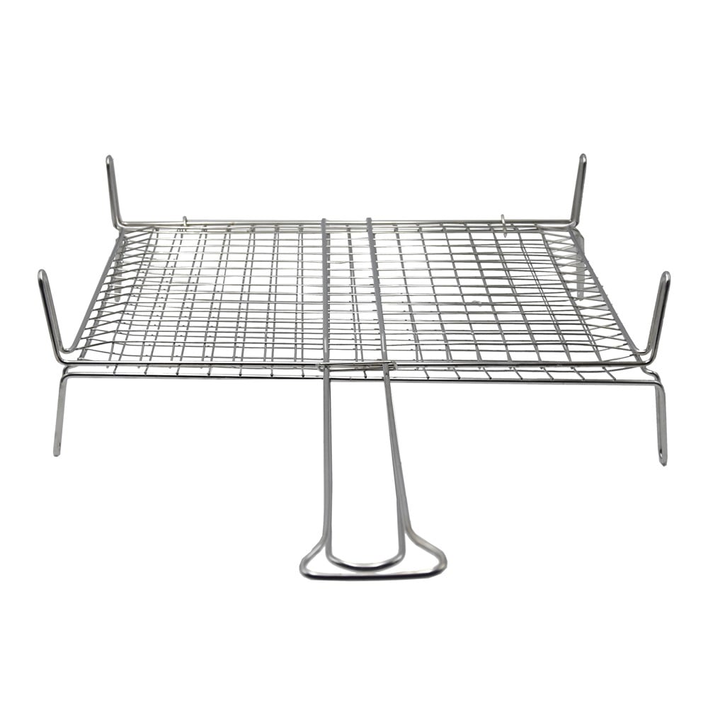 Double foot grill. It consists of metal material against gluing. Serves to keep food for grilling in approximate size. The grill turns on both sides which makes cooking easier and more practical