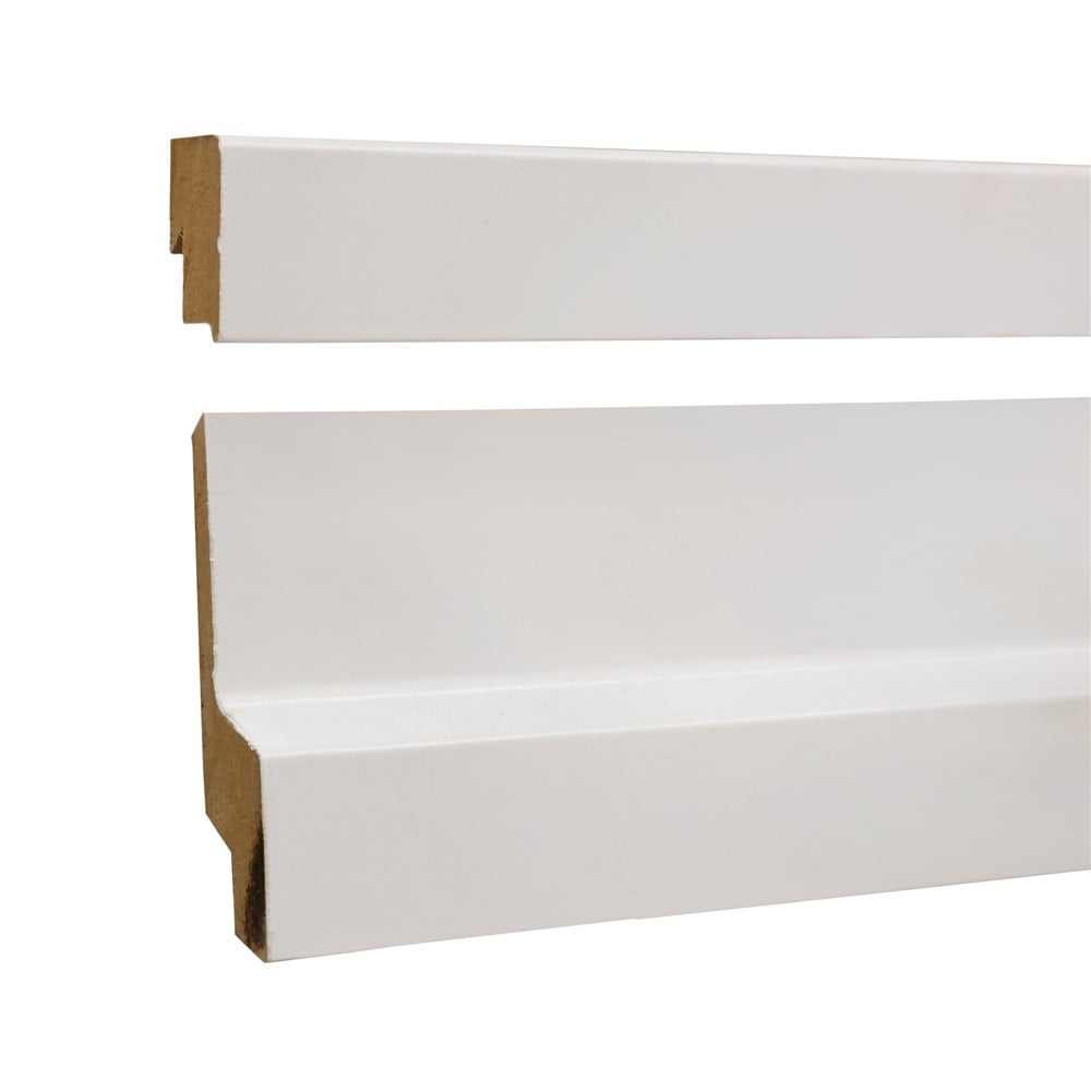 MDF skirting board perfectly covers the expansion joint of the floor. It is covered with wood-patterned foil and is secured with the mounting parts provided. Matching corners and edgings, skirting boards available.