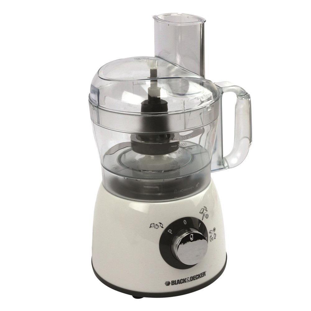 This food processor (400W) from Black + Decker is a compact kitchen appliance that offers you the basis for many preparations. The food processor helps you beat, mix, knead and cut a variety of ingredients. The kitchen appliance has 3 settings, so you can choose from variable speeds to achieve a perfect, smooth result. You use the pulse button for short edits, such as beating and mixing. In addition, you can choose from 2 speeds. The rubber feet of the food processor provide extra stability. The set consists of the motor part with the mixing bowl with lid (content 1200 milliliters) and 4 accessories. With the separate, stainless steel cutting disc, you can cut cucumber and carrot into slices and strips, for example. You can use the stainless steel cleaver for, among other things, cutting vegetables and meat into small pieces. With the plastic mixer part you knead dough and mix batter. The emulsifier disc helps you to beat egg or whipped cream, for example.