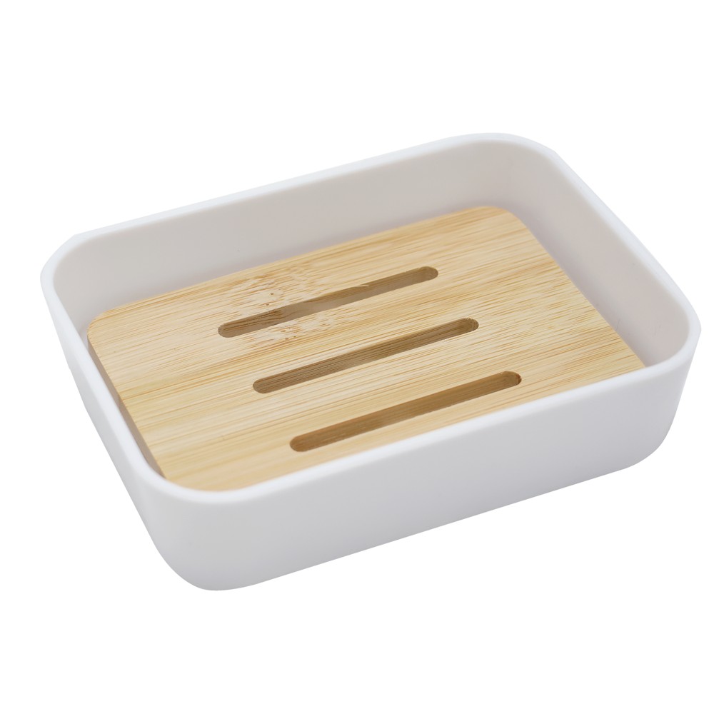 Soap holder, plastic/bamboo, white, 12x8.5xH3cm